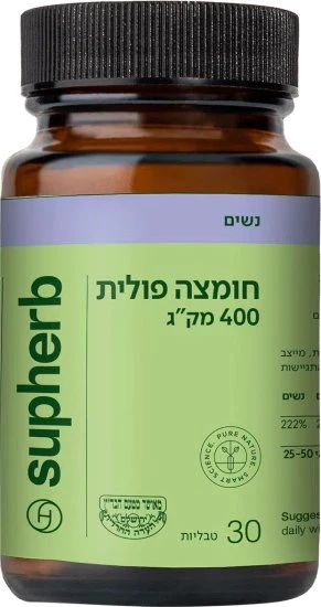 Compareחומצה פולית 400 מק"ג מבית Supherb. חומצה פולית טבעית מתיל-פולאט היא הנגזרת הפעילה של חומצה פולית, בעלת זמינות גבוהה